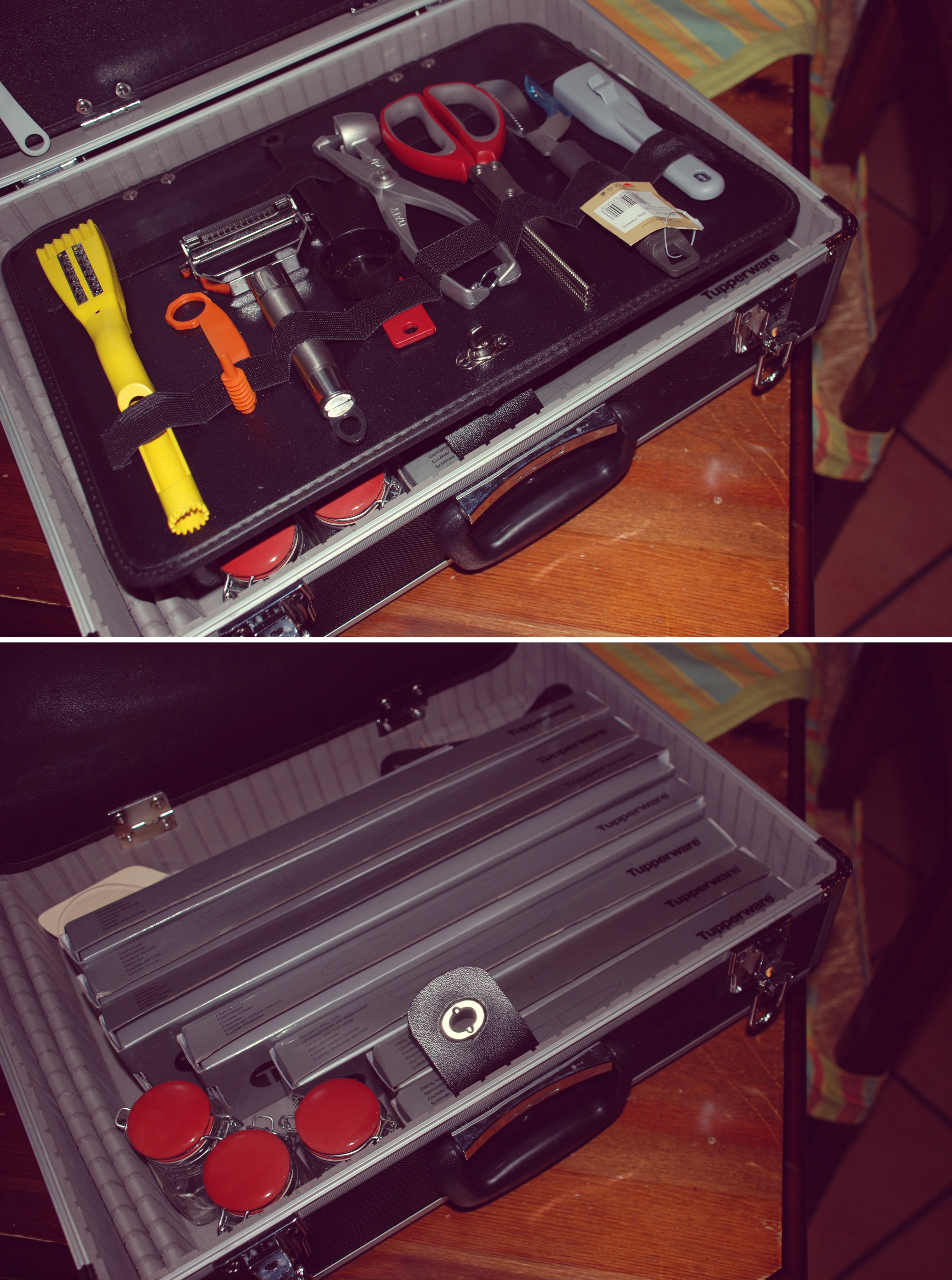 Piesse: nel tempo (ormai sono passati più di otto mesi), ho comprato tante altre cosine, a riempire gli spazi della bag -Tupperware dovrebbe inventare una carta fedeltà solo per me (argh!)-… ne vedrete delle belle!