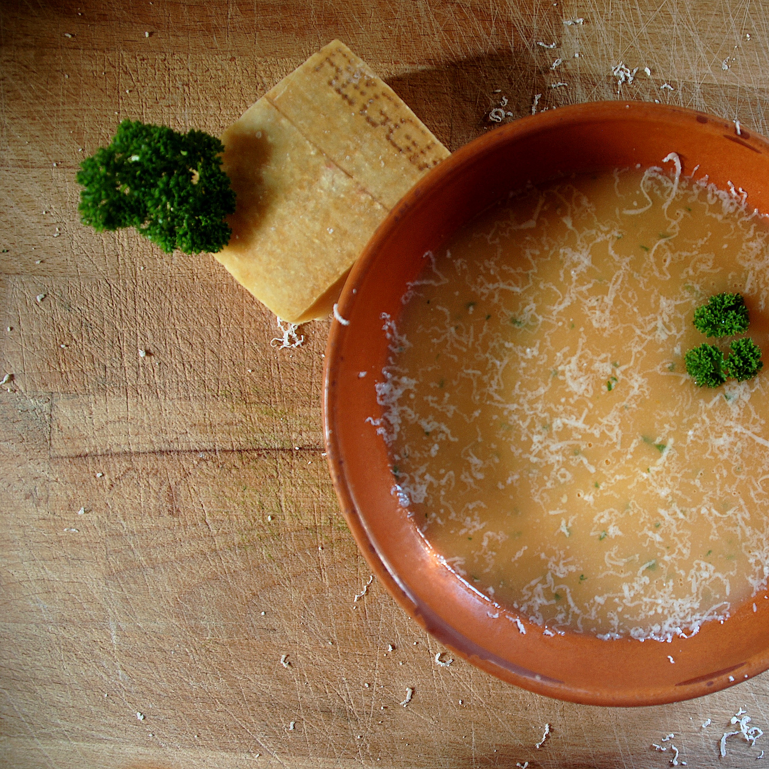 Aggiungo prezzemolo riccio tritato, olio EVO e, una volta impiattato, Parmigiano Reggiano.