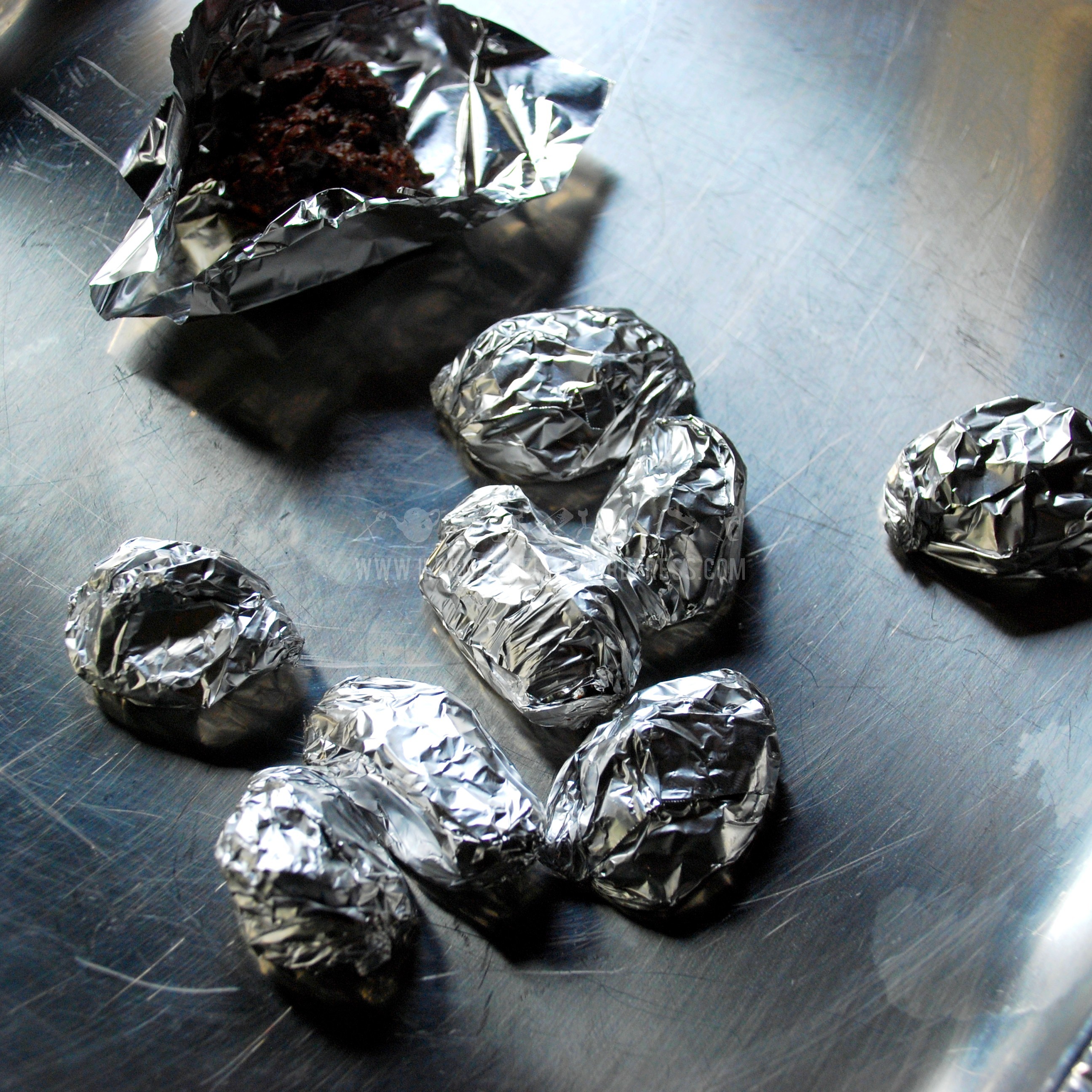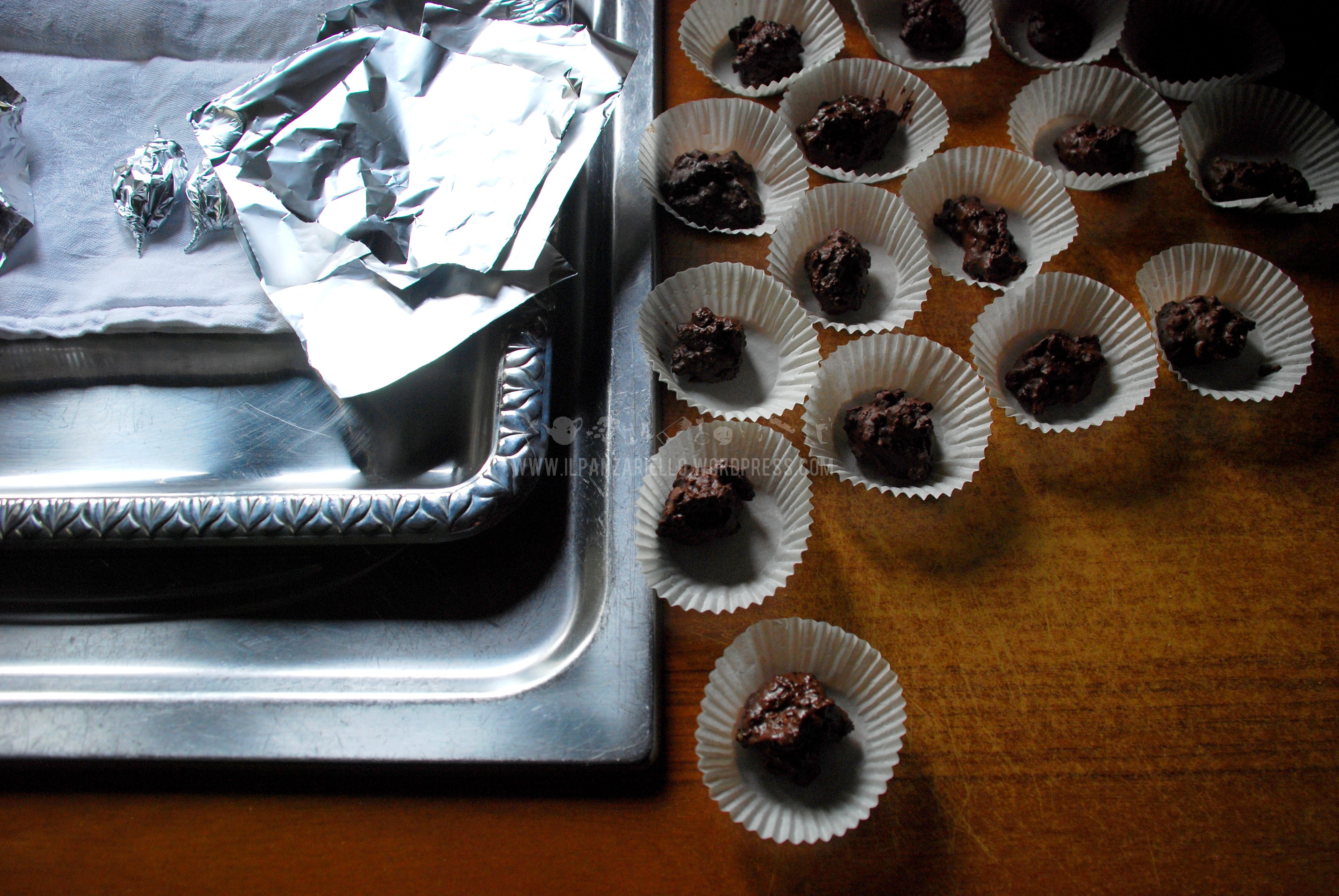 Lasciale poi raffreddare (il cioccolato così si indurirà di nuovo) e incartale con la stagnola.