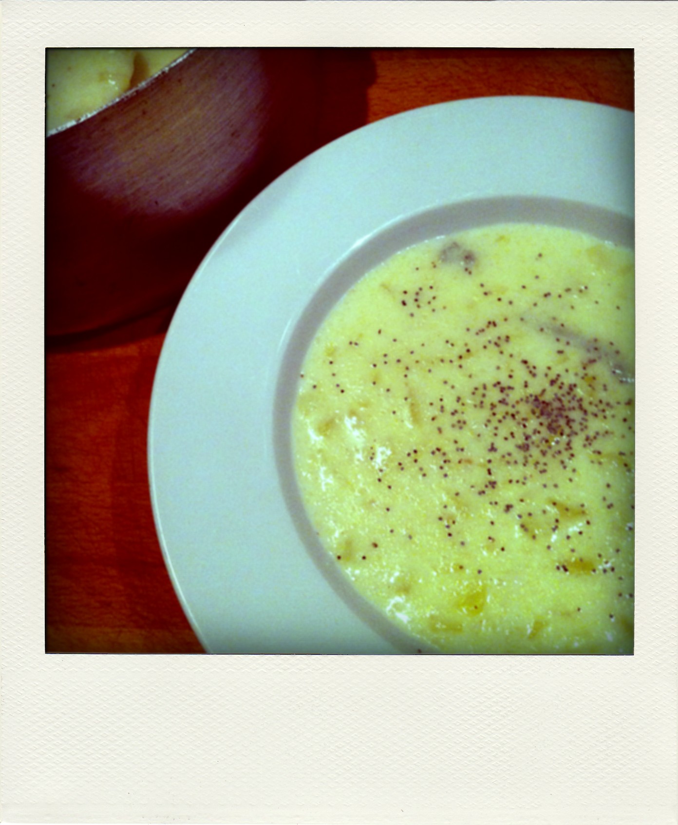 Aggiungo il gorgonzola (60 gr ca.), aggiusto di sale e impiatto, spolverando, infine, con una manciata di semi di papavero.