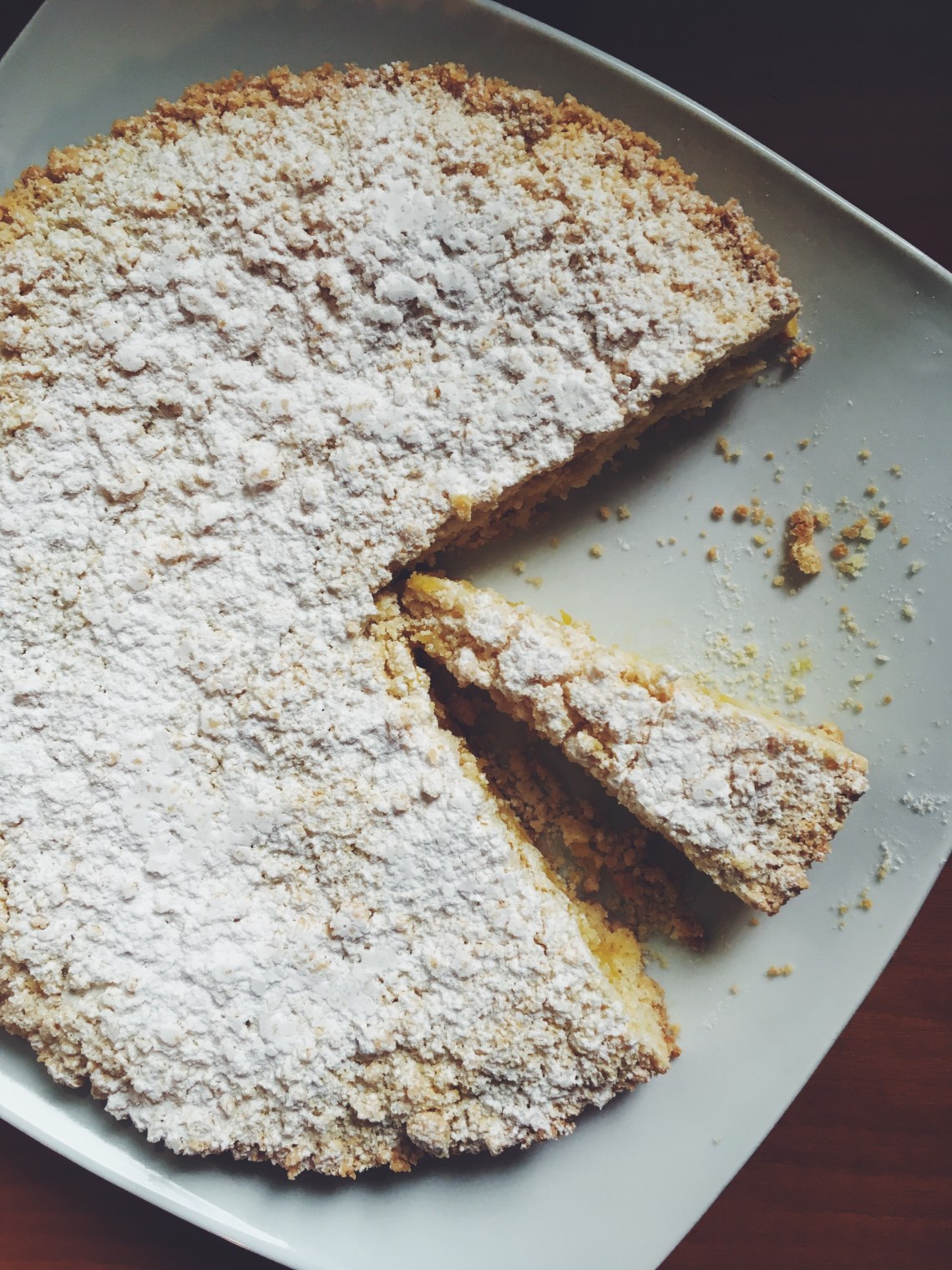 Una volta fredda, cospargi con zucchero a velo e conserva la torta coperta in un luogo fresco e asciutto, per 2/3 giorni.