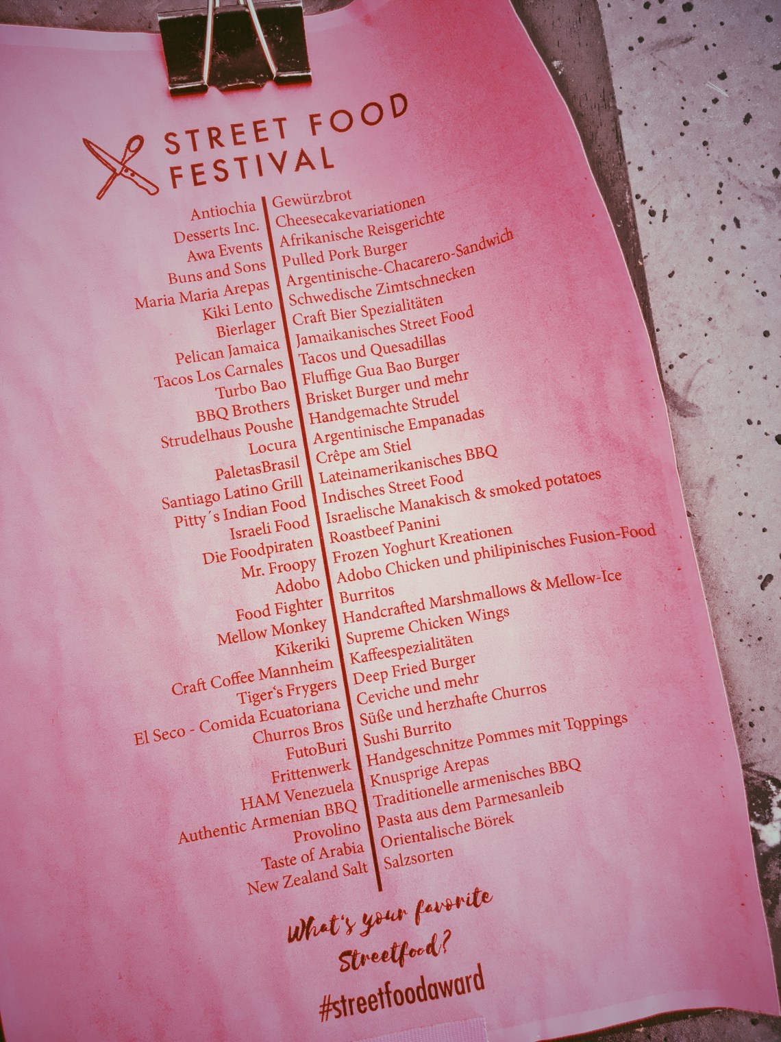 Metà aprile. Primavera. Sabato mattina. Heidelberg si sveglia sotto una pioggerellina “di aghi” e un freddo cane: ci sono 2 gradi. Ovviamente, neanche il tempo di capire se è il caso o no di andare a fare i zozzosi a Messplatz che già siamo sull’autobus. Direzione Street Food Fest. 34 stand di cucine dal mondo. Come mancare? Siamo sinceri però: “grazie” al clima decisamente confortevole, ci limitiamo a provarne solo 5. Di questi, infatti, troverete le didascalie. Per tutto il resto, visitate il sito (link in fondo all’articolo, più i collegamenti ai social) oppure, se vi trovate in terra teutonica, cercate le prossime tappe e andate a provare di persona tutte le specialità tipiche che preferite!