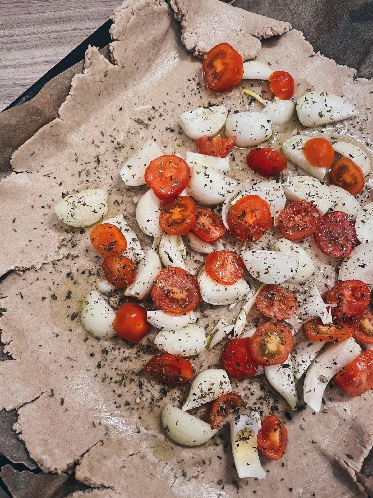 Condisco con quello che mi offre il frigo (!), ripiego i bordi e inforno a 180º statico per circa 40 min.
