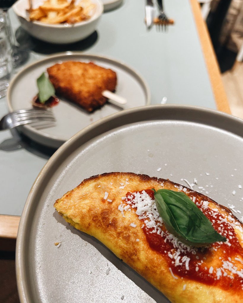 E infatti non possiamo non ordinare il “Filoscio”, emozionandoci non poco perché è uno dei piatti–firma di Angelamaria (e tanti di voi sanno chi è!); un piatto quasi dimenticato o comunque poco conosciuto, qui proposto sotto forma di omelette condita con stratto di pomodoro e ripiena di fior di latte. Un altro antipasto già iconico del locale è “Gegè in carrozza”, una mozzarella in carrozza servita con un filetto di alice e salsa di pomodorino rosso. Ottime le patatine caserecce, tagliate a mano con tutta la buccia. Noi adoriamo mangiarle con il peperoncino piccante, che qui è curato da una startup locale che ha dato vita al marchio “‘U Forte Cilentano”, conserva piccante ottenuta da peperoncini da coltivazione biologica, lavorati freschi e immersi in olio di oliva. Ci sarà poi tempo per provare anche “‘O per e ‘o muss” e le celeberrime “Paddoccole”, le polpette di patate e cacioricotta di capra tipiche del Basso Cilento interno. Stuzzica molto anche il “Panino di Geppino”, un piccolo panino semi integrale farcito con tenero maialino, valeriana, funghi, cipolla in agrodolce e salsa yogurt.