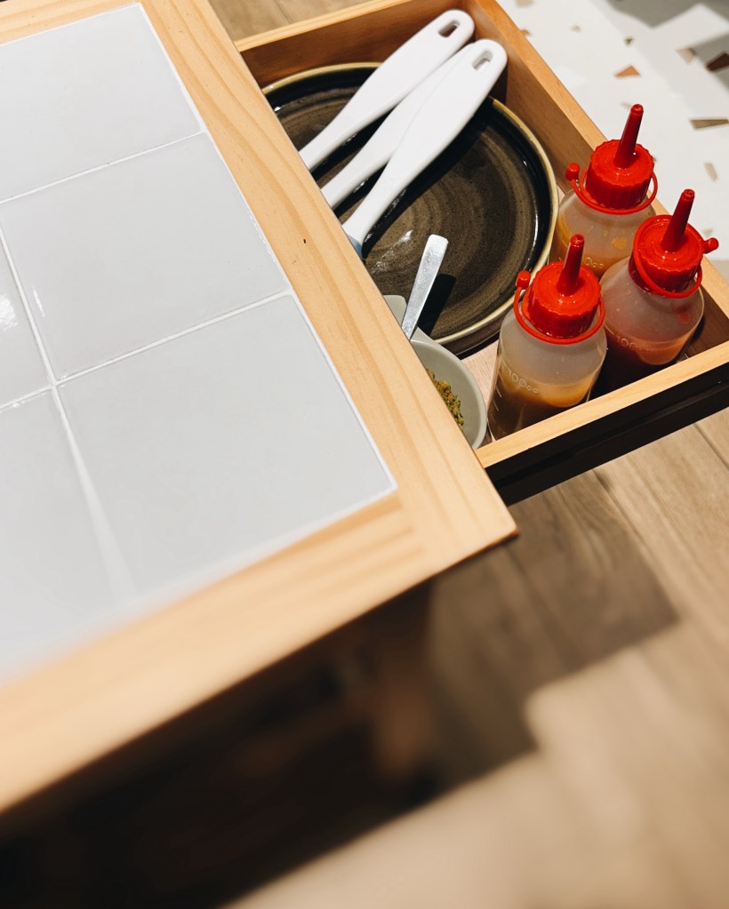 Anche lo spazio dell’ampia sala riflette questo equilibrio: un ambiente che strizza l’occhio al design nordico, con linee essenziali e materiali naturali ma pensato per essere caldo e accogliente. Tutti i dettagli avvolgono i commensali, favorendo una convivialità autentica, in cui l’attenzione si concentra sulla tavola e sul piacere di condividere il cibo.