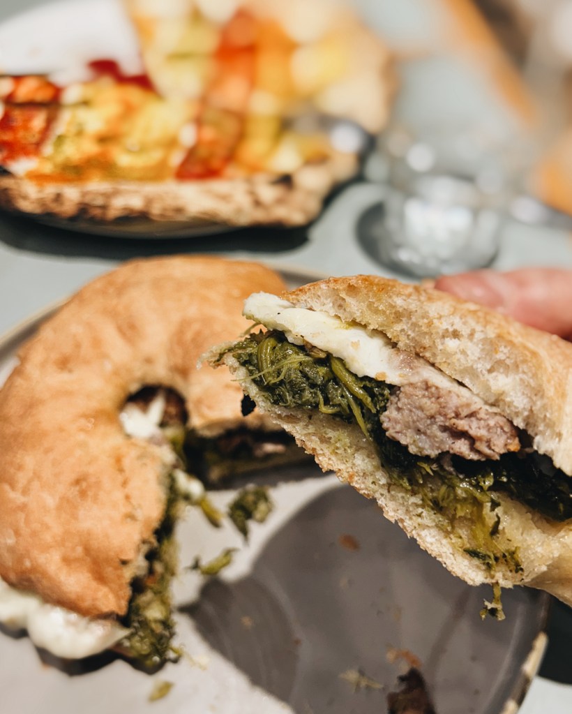 Per la farcia del viccio non riusciamo a non farci conquistare dalla combo regina di questa stagione: sasicc’ e friarielli. Ma anche le altre due proposte sono assolutamente da provare: “Scarolella” (con fior di latte, scarola passata in padella con alici, olive e capperi) e “Ariccia” (con porchetta di Ariccia, provola e patate al forno).