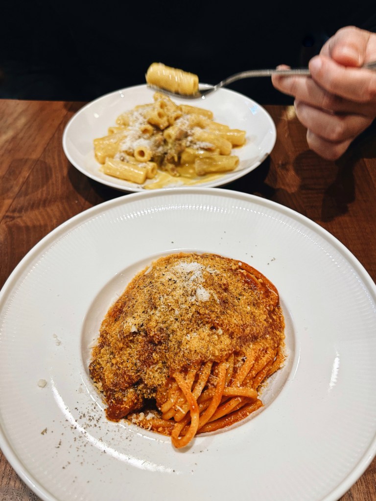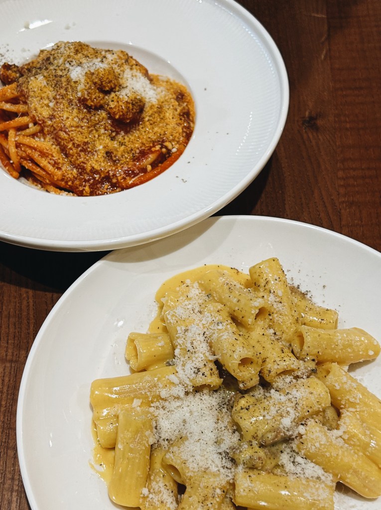 Lo spaghettone all’amatriciana e i rigatoni alla carbonara occupano lo stesso tavolo come due poli magnetici: il primo finito nelle liste internazionali dei migliori piatti di pasta, proclamato da qualcuno “la migliore del mondo”; il secondo difeso altrove come la vera bomba, quella che sposta l’ago della bilancia.