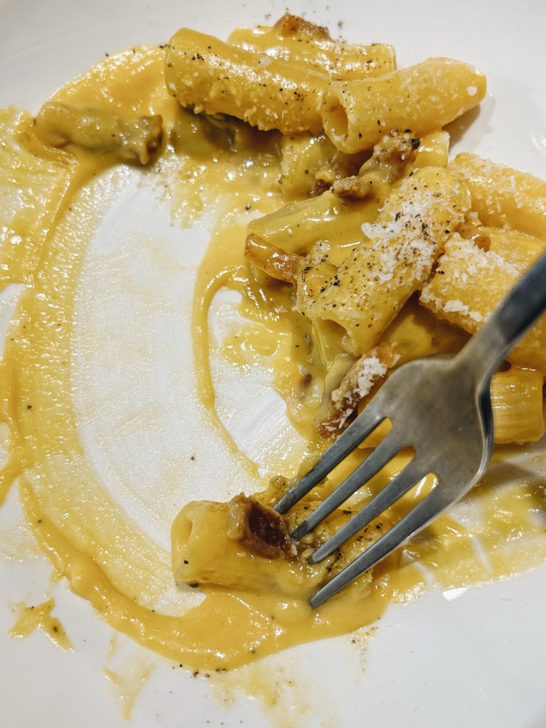 È qui che il dibattito si accende davvero, e non su quello per cui eravamo arrivati preparati: non carbonara contro amatriciana, non guanciale croccante contro guanciale scioglievole, non giallo contro rosso. Per restare sull’assist calcistico che (giuro, non volendo) mi sono appena servita da sola, è proprio in questo punto che la traiettoria della Cicolini sgancia la partita dalla logica del tifo, sfugge al derby gastronomico che vorrebbe ingabbiarla dentro una gerarchia di preferenze e si rifiuta di giocare dentro gli schemi consueti.
