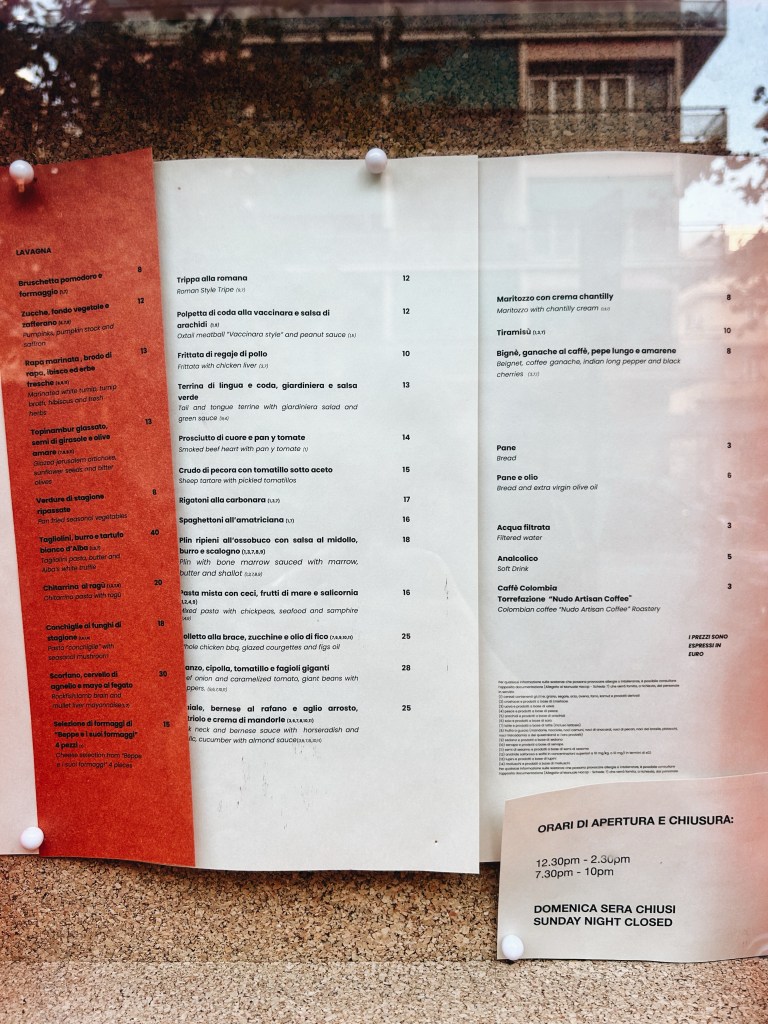 Forse la domanda davvero interessante non è “meglio la carbonara o l’amatriciana?”, ma come si sia arrivati, ad esempio, all’origano cubano, al chayote, al sudachi; quali ossessioni, quali letture, quali deviazioni hanno portato quella mano e quel pensiero — nati dentro la trippa e la coda — a spingere così lontano i confini della romanità senza mai smettere di parlarle così meravigliosamente sottovoce.