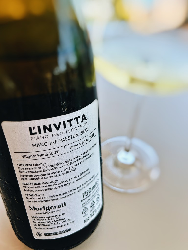 Tra i tanti, sorprende per nitidezza e identità Invitta Fiano di Morigerati: un progetto che nasce nel cuore del Cilento, nel Parco del Cilento e Vallo di Diano, e che concentra in una sola etichetta il lavoro di vigne tra i 600 e gli 800 metri, su suoli diversi ma complementari. Nel calice è luminoso, attraversato da una mineralità che richiama immediatamente la brezza marina. Il sorso, infatti, è salino, con una chiusura iodata e balsamica che dialoga con naturalezza con la cucina, restando amabimente, senza invadenza.