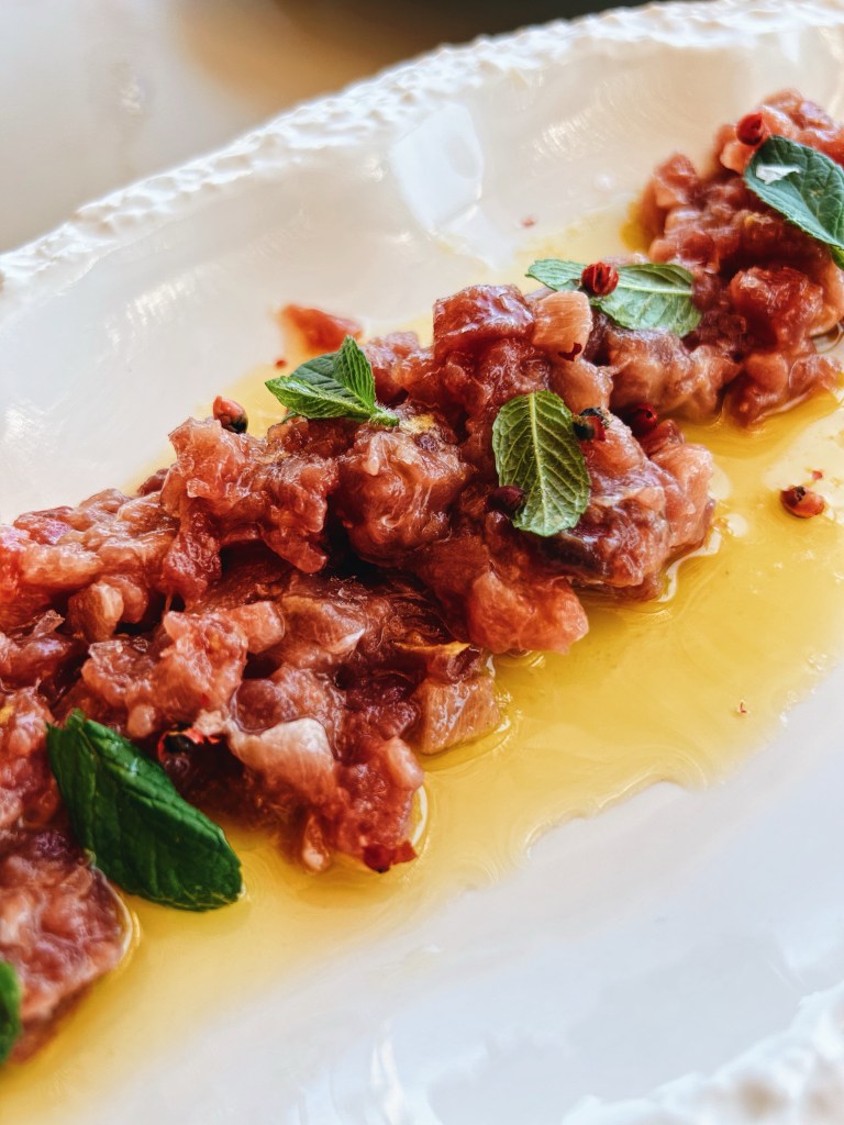Alla tavola di Antonio Morinelli, da Suscettibile, la prima impressione è olfattiva, quasi istintiva: una freschezza netta, immediata, che passa soprattutto dall’olio — elemento cardine, mai accessorio — capace di accompagnare e amplificare, in particolare nei crudi, senza mai sovrapporsi.