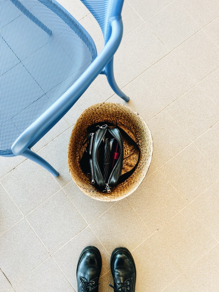 L’amabilissimo cestino porta borsa ai piedi del tavolo